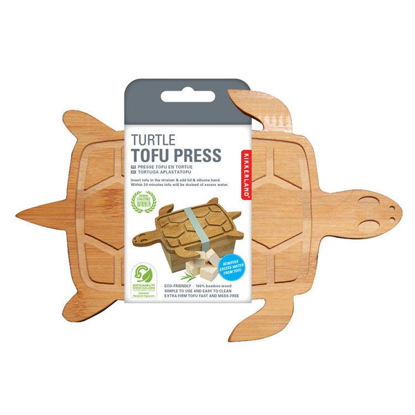 Remove water from your tofu with this turtle shaped tofu press! Made from bamboo which is naturally antibacterial, with a silicone band. Designed by Benjamin Cignarale, Winner of the Kikkerland Design Challenge at Appalachian State University Designer: Benjamin Cignarale Product Measurement: 8.9" x 6" x 2.6" Material: bamboo, silicone